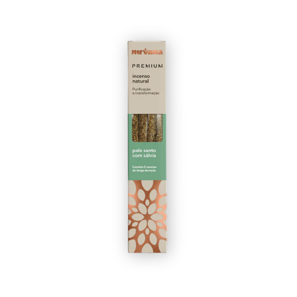 O Incenso Nirvana Palo Santo com Sálvia Premium é perfeito para quem busca uma limpeza mais completa do ambiente, unindo duas fragrâncias clássicas de purificação, proteção energética e harmonização espiritual. Um incenso premium de longa duração que perfuma por mais tempo, ideal para aromatização de ambiente, rituais e práticas de meditação.