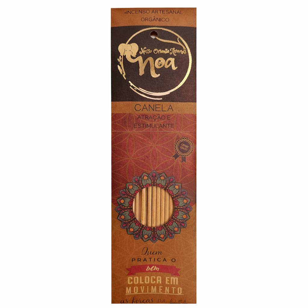 O Incenso NOA Orgânico Canela é um incenso orgânico e natural, perfeito para quem busca aromatização de ambiente com energia quente e envolvente, ideal para intenção e movimento. Por não possuir carvão na composição, ele preserva a pureza do aroma e oferece uma queima mais agradável e equilibrada — excelente para uso diário, rituais e práticas de espiritualidade.