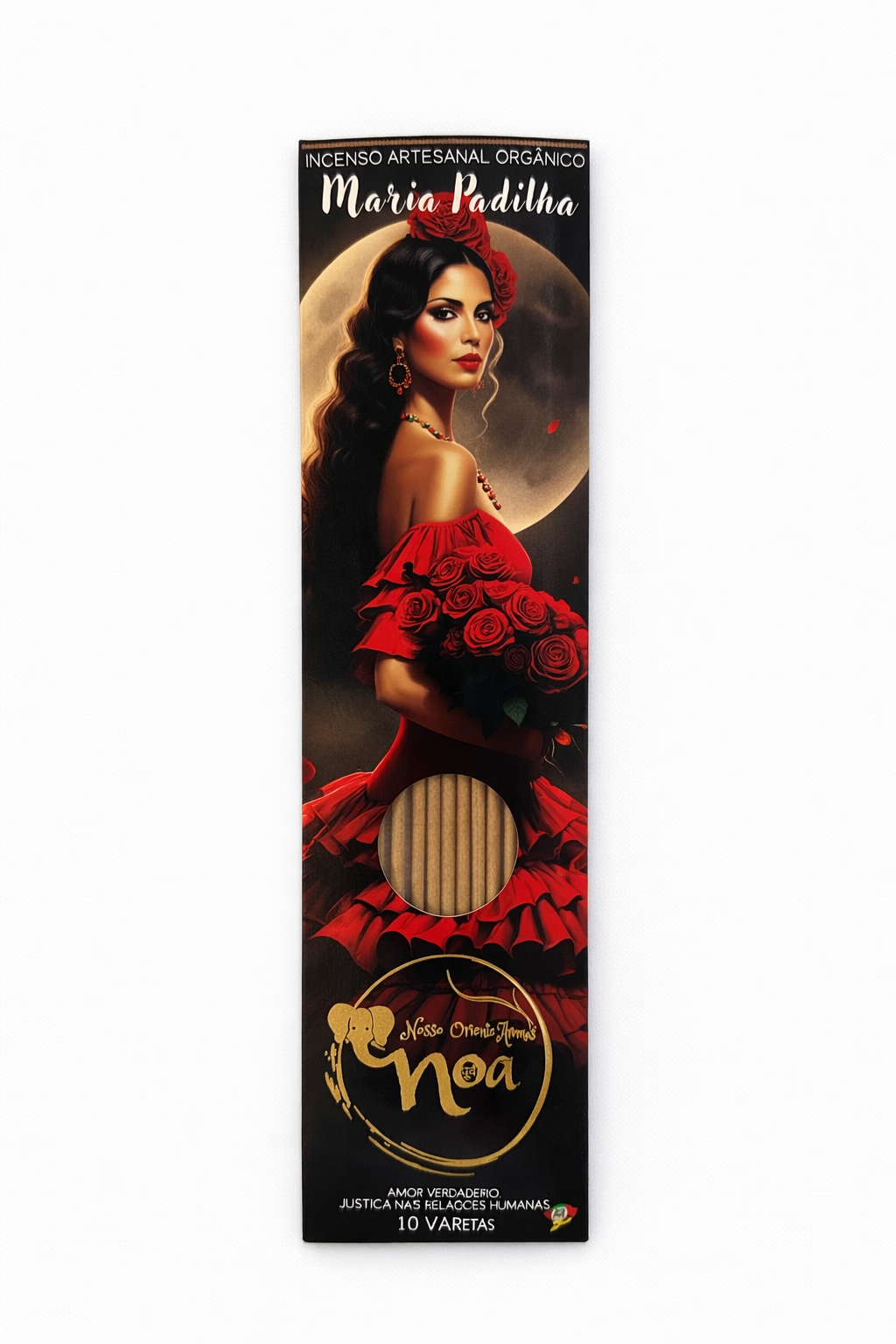 O Incenso NOA Orgânico Maria Padilha é um incenso orgânico e natural, perfeito para quem busca aromatização de ambiente com presença, magnetismo e intenção. Por não possuir carvão na composição, ele preserva a pureza do aroma e proporciona uma queima mais agradável e equilibrada — ideal para rituais, autocuidado e práticas de espiritualidade.